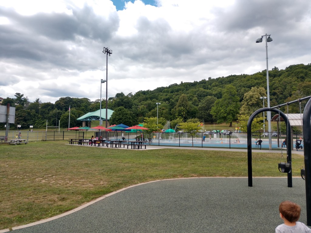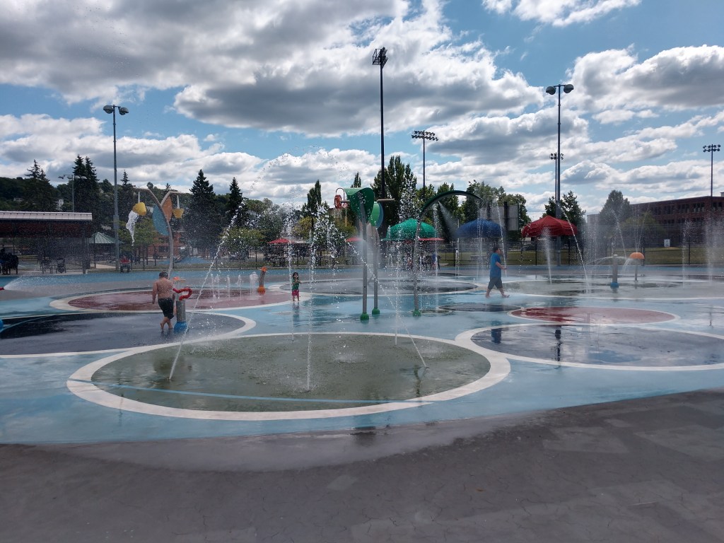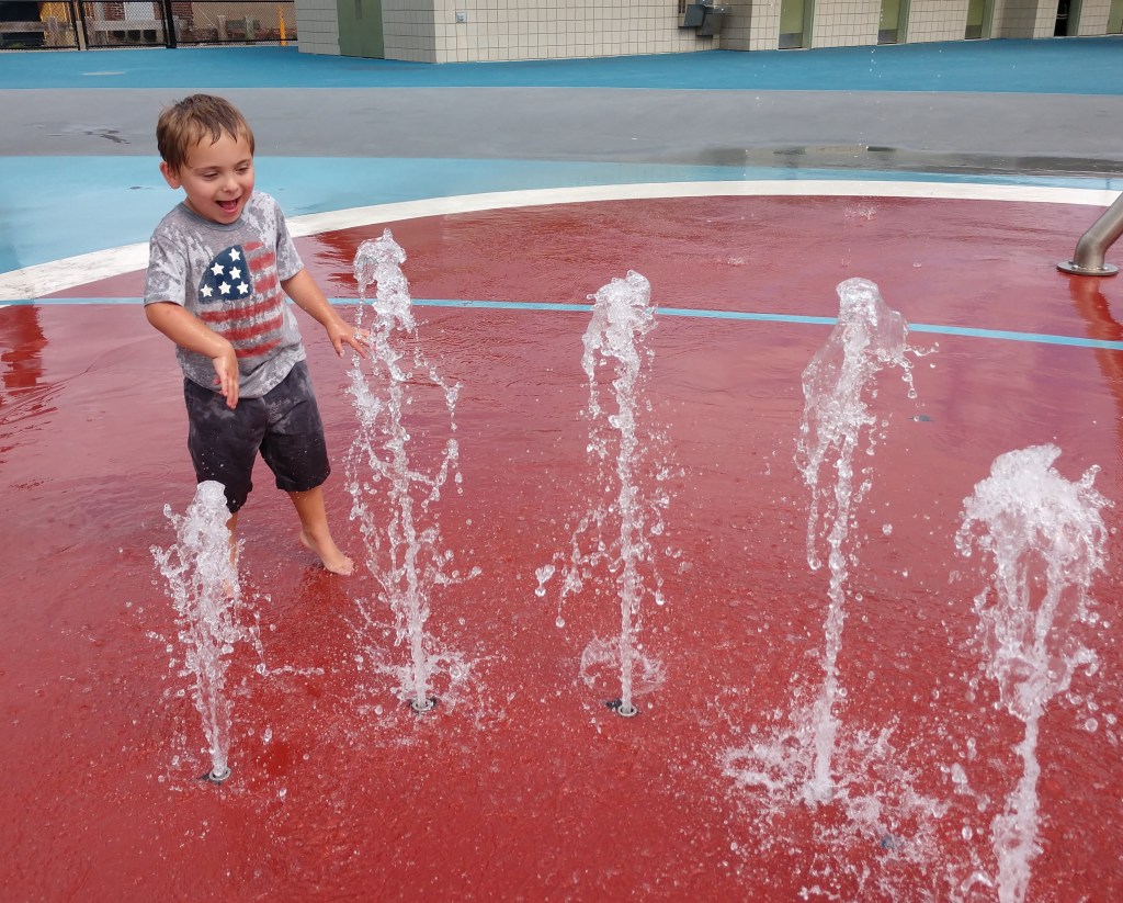 Has separate big kid and toddler sections. Seasonal splash pad.