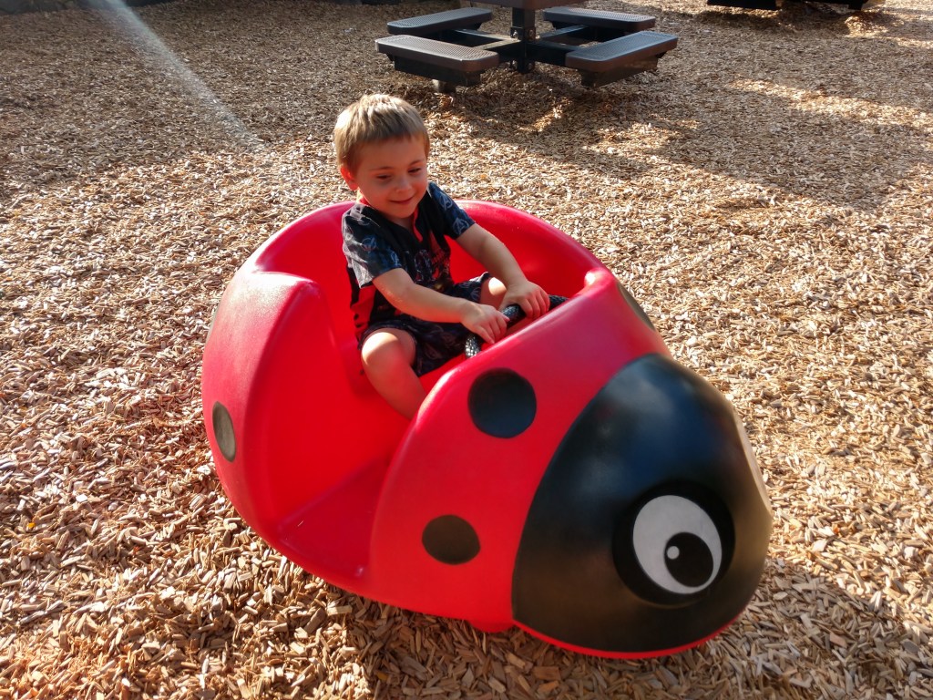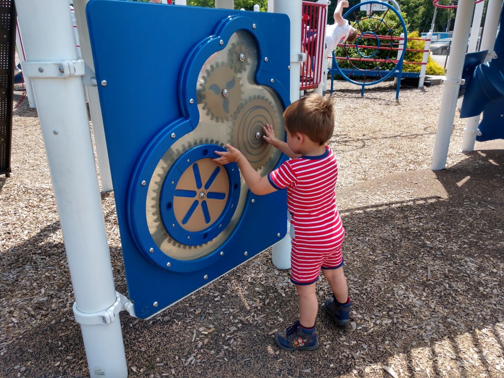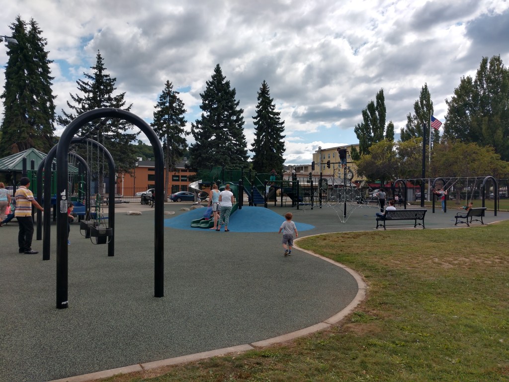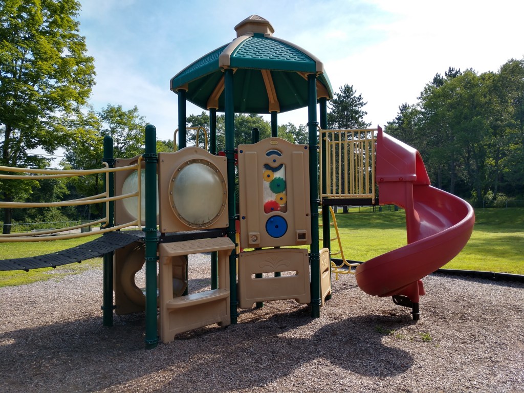 Has separate big kid and toddler sections. Seasonal splash pad with bathrooms.