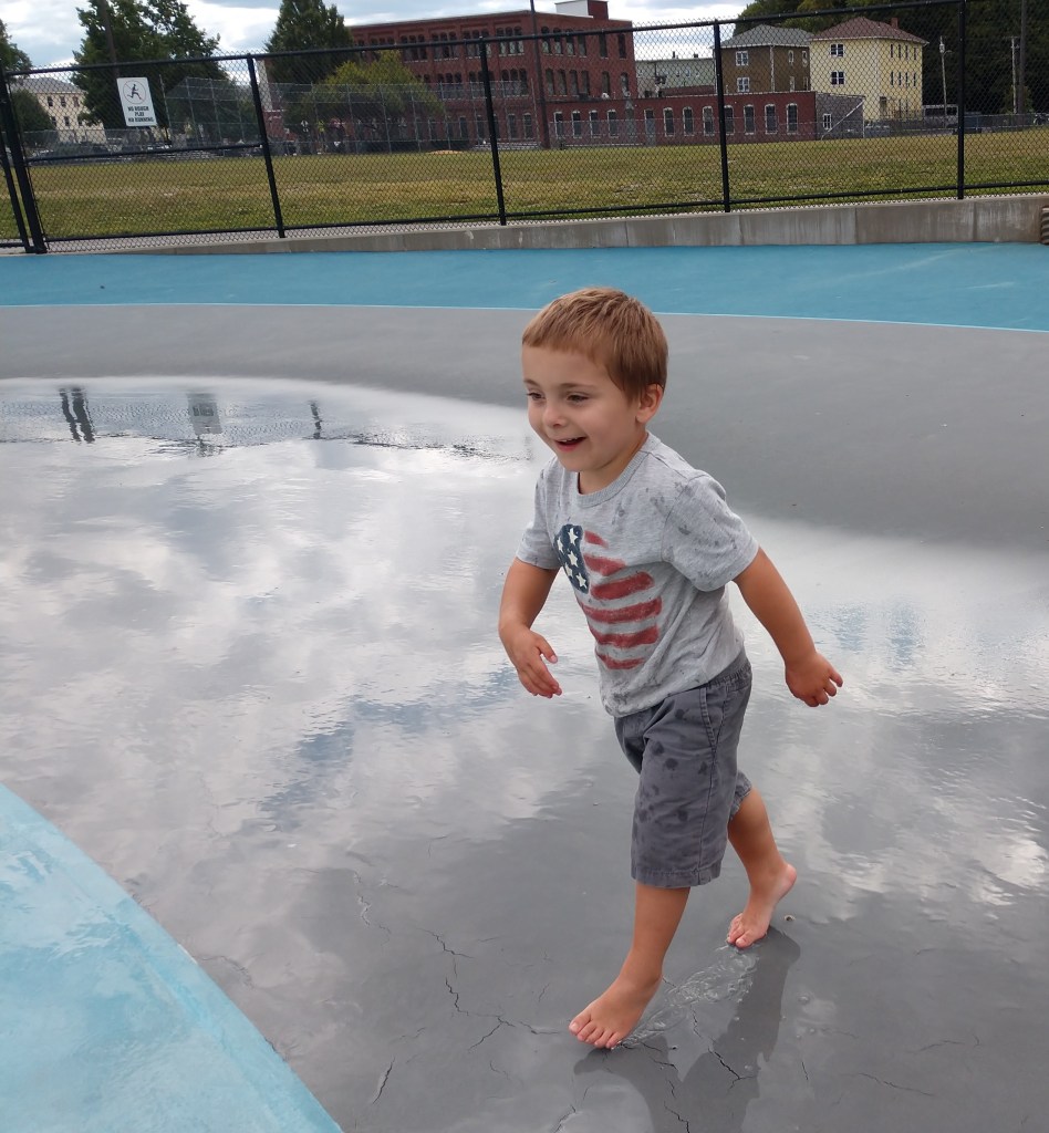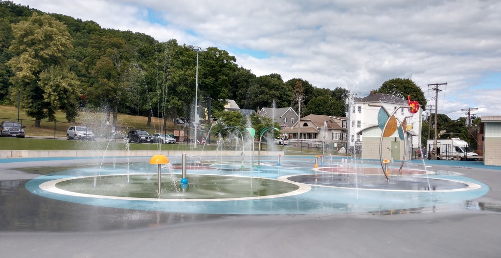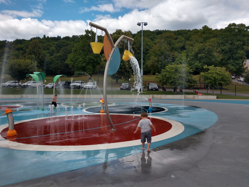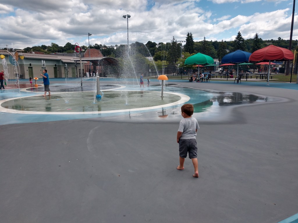 Has separate big kid and toddler sections. Seasonal splash pad.